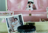 Photograph a departed loved one in memoriam by having photographs taken of them in their old photos with their belongings in their home. A keepsake of their lives.